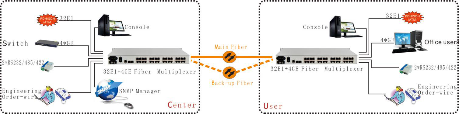 該設(shè)備是在超大規(guī)模集成電路基礎(chǔ)上研制的點(diǎn)對(duì)點(diǎn)光傳輸器件。設(shè)備提供1-32*e1接口、1-4*10/100/1000M以太網(wǎng)接口(網(wǎng)速1000M)或4路百兆以太網(wǎng)帶物理隔離,以下為選配功能,2個(gè)擴(kuò)展接口。4*以太網(wǎng)接口為交換機(jī)接口,可支持VLAN。1擴(kuò)展接口可作為RS232/RS485/RS422異步數(shù)據(jù)的傳輸通道,干接點(diǎn)信號(hào),1通道數(shù)字商務(wù)電話可選。它非常靈活。具有報(bào)警功能。工作可靠、穩(wěn)定、功耗低、集成度高、體積小。